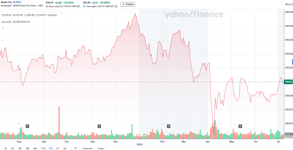 Apple Inc. (NASDAQ: AAPL) nadále potvrzuje svou pozici globálního technologického lídra prostřednictvím technologických inovací, organizačních změn a strategických rozhodnutí v oblasti dodavatelského řetězce. K datu 9. července 2025 se cena akcie pohybovala okolo 210,01 USD, přičemž tržní kapitalizace společnosti přesahovala 3,28 bilionu USD. Poměr cena/zisk (P/E) činí 33,7, zatímco zisk na akcii (EPS) dosahuje 6,42 USD.