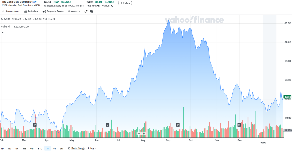 Aktuální cena akcií společnosti Coca-Cola (NYSE: KO) se pohybuje na úrovni 62,83 USD za akcii. Podle analytických předpovědí by hodnota akcií mohla do konce roku 2025 dosáhnout 68,96 USD a do roku 2029 až 83,22 USD. Odhady růstu jsou založeny na současných tržních podmínkách, strategických krocích společnosti a celkovém makroekonomickém vývoji.