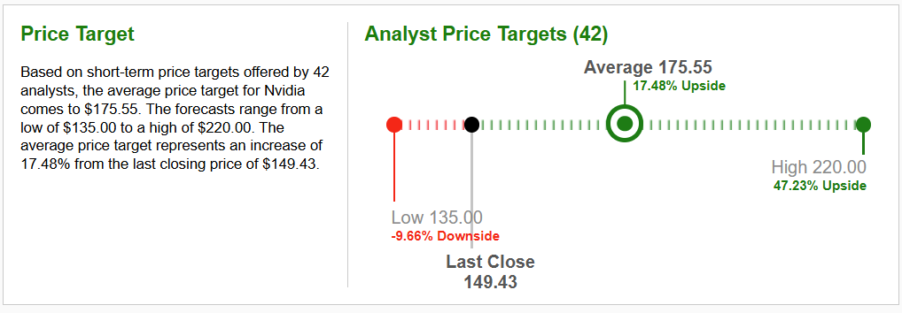 Společnost Nvidia Corp. (NASDAQ-NVDA) také vyplácí svým akcionářům pravidelné kvartální dividendy. Dividendový výnos je aktuálně 0,03% p.a. a vlastní výše dividendy byla schválená valnou hromadou společnosti na hodnotu 0,04 USD na akcii. Tyto skutečnosti zaujaly nadnárodní investiční korporace a soukromé investory pro nákup akcií právě společnosti Nvidia Corp. (NASDAQ-NVDA) , u které byla stanovena průměrná cílová cena pro krátkodobý, až střednědobý investiční horizont na 175,55 USD za akcii.