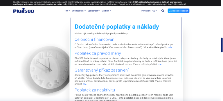 Potenciální poplatky: Zatímco spready (rozdíl mezi nákupní a prodejní cenou) mohou být u některých nástrojů konkurenceschopné, Plus500 si může účtovat poplatky za nečinnost a další dodatečné náklady. Před otevřením účtu se ujistěte, že rozumíte struktuře poplatků.