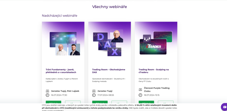Prozkoumejte vzdělávací zdroje: Posuďte dostupné vzdělávací materiály na platformě Purple Trading. Pokud jste začátečník, zvažte jejich doplnění o externí zdroje.