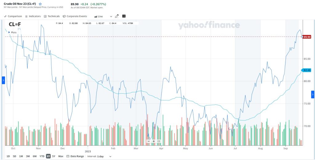 Ceny ropy klesly poté, co americký Fed (Federal Reserve Bank) varoval před dalším možným navýšením sazeb, které mohou následovat do konce tohoto roku. Zvýšení úrokových sazeb může zpomalit hospodářský růst a snížit poptávku po ropě. „Kombinace dalšího zvýšení úrokových sazeb, síly dolaru a dalšího zvýšení cen ropy zvýší pravděpodobnost vzniku recese. Energetické trhy jen málo reagují na americká data z energetiky, která ukazují, že zásoby ropy minulý týden klesly v souladu s očekáváním. Ropa také zaznamenává za poslední tři týdny zisk.